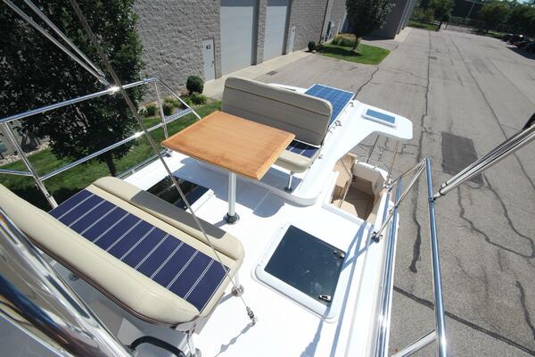 Command bridge, retractable, compass, second station VHF, electronic controls, thruster control, trim tab control