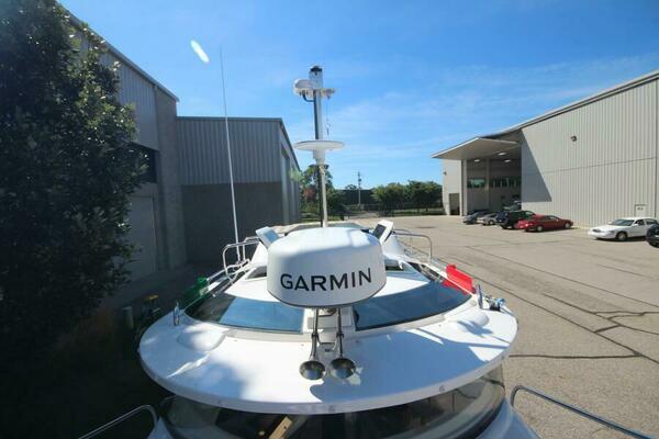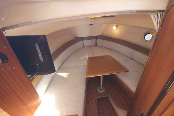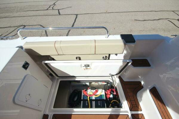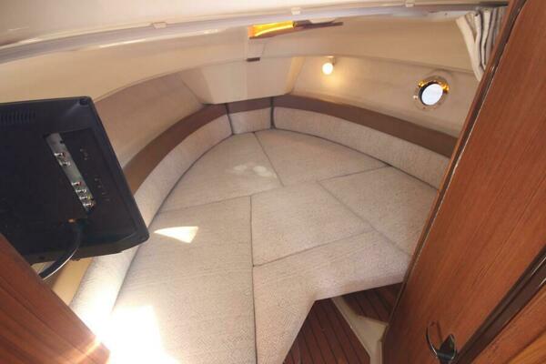 The forward stateroom is private and comfortable featuring a large bed, opening hatches for airflow, reading lights, and a TV/DVD combo. Powered by the Yamaha 250 HP outboard, the R-25 is fast and efficient. The power of the 250 HP Yamaha is perfectly matched to the R-25's planning hull. The R-25 also features our patented Laminar Flow Interrupter technology providing smooth, positive cornering performance. Never get lost and enjoy monitoring your speed and performance from your state-of-the-art Garmin 1242xsv chartplotter with GPS, transducer, and sonar.