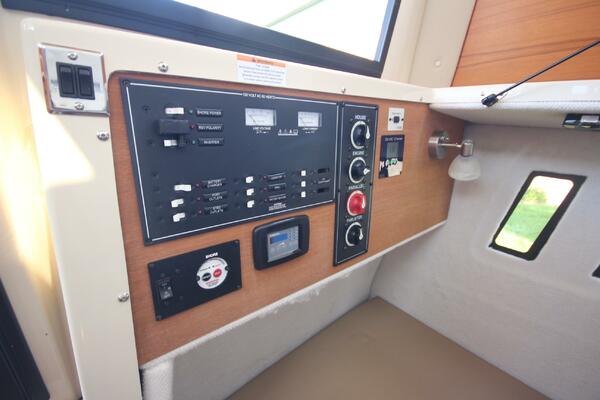 Her notable options include the upgraded Lithium House Battery System so you can run her air condition away from the dock, Garmin 1243xsv chartplotter/sounder/transducer, Garmin Radar xHD, Garmin Autopilot, electric/alcohol stove, microwave, solar panel, bow thruster, windlass and much more.