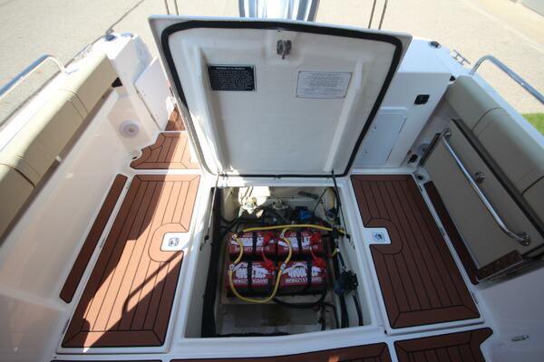 The forward stateroom is private and comfortable featuring a large bed, opening hatches for airflow, reading lights, and a TV/DVD combo. Powered by the Yamaha 250 HP outboard, the R-25 is fast and efficient. The power of the 250 HP Yamaha is perfectly matched to the R-25’s planning hull. The R-25 also features our patented Laminar Flow Interrupter technology providing smooth, positive cornering performance. Never get lost and enjoy monitoring your speed and performance from your state-of-the-art Garmin 1242xsv chartplotter with GPS, transducer, and sonar.
