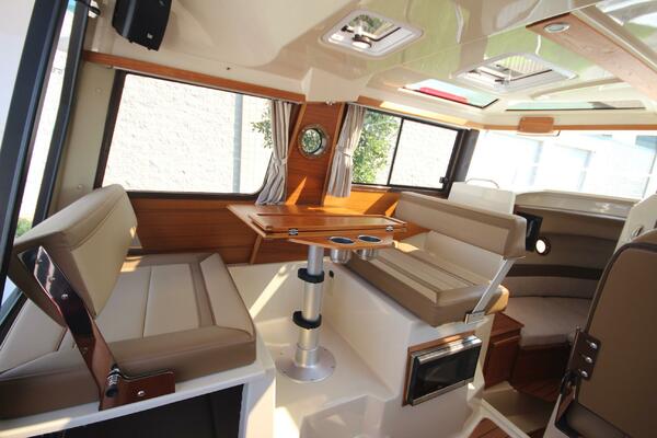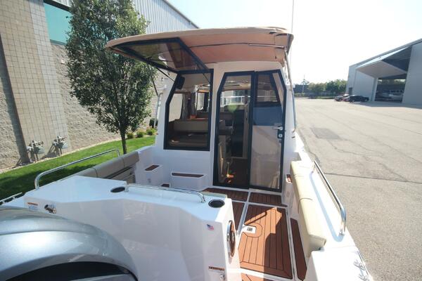 The R-25 is a feature-packed cruiser designed for comfort, ease of use, quality and fun. You’ll see the Ranger Tugs DNA in every facet of the R-25’s thoughtful design. Right away you’ll notice one of the most innovative features of the R-25, the large swim step and handrails that extend aft past the outboard motor. The extended swim platform presents a clear walkway, free of all engine rigging which opens a whole new world of fishing, cruising, and water-sports opportunities. This exciting area allows you to safely and easily board a dinghy, net a fish, step to or from a low dock (important for pets), and easily med-tie without fear of damaging your outboard and having to leap to the dock.