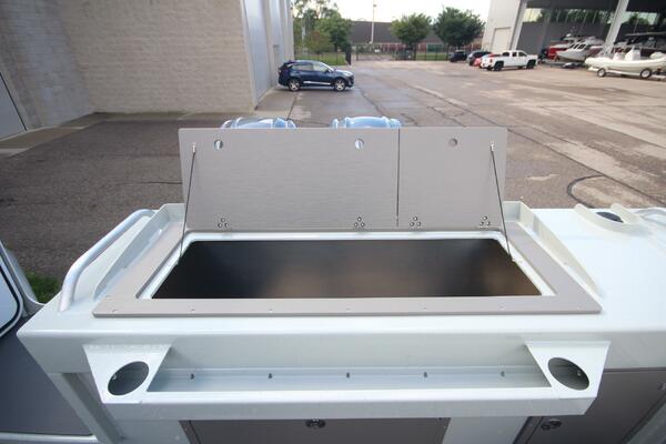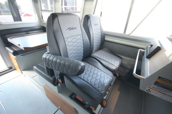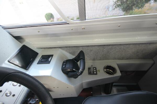 Driver dash w/stainless steel LED switches, fuel gauge, trim tab controls, 4- USB ports, and room for 2-12" flush mount screens