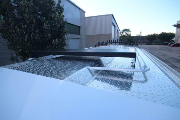 Full hard top (116") w/ forward leaning windows, grab handles, red/white LED cabin lights, Alaskan bulkhead, tread plate roof, 3" full length top grab rails, and offset aisleway.
