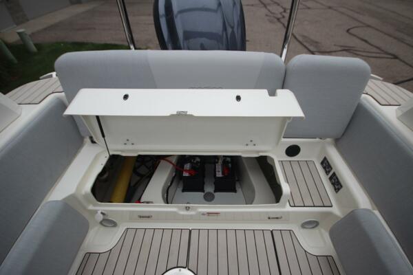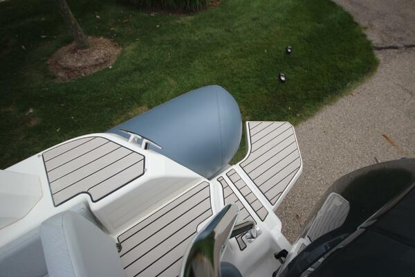 HULL & DECK: 1 Bow D ring , 2 bailers, 2 swimming platforms with telescopic boarding ladder (port) , 3 large storage compartments, 4 cleats, 6 cup holders (present on wings (4),console and bolster) , Built-in fuel tank 79 gallons, fiberglass wings with EVA decking, Self bailing cockpit, Tit-up console with storage.