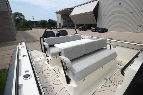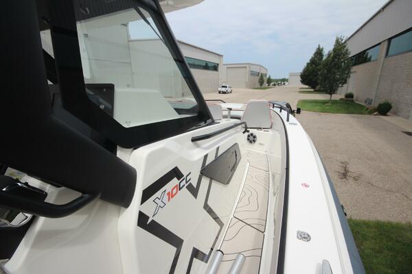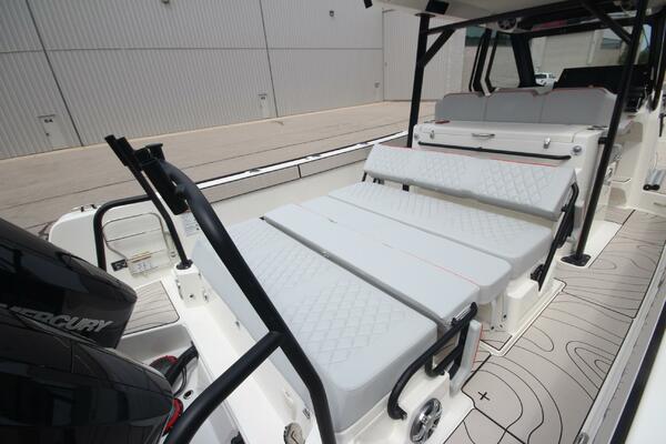 Take advantage of our "Fall Special Pricing with Rebates". We have two new X10CC's in stock at our Racine, WI, Grand Haven, MI and LaSalle, MI locations. Both engine packages will hit a top end in the 63-64 mph range. We loaded them with factory options and then added custom helm, helm seat, bow sunpad and twin aft seat canvas covers. We are extremely excited to introduce this new Zodiac X10CC Center Console series to the Great Lakes!